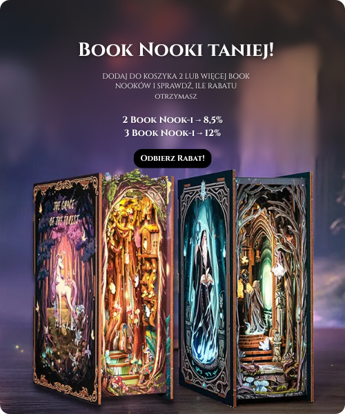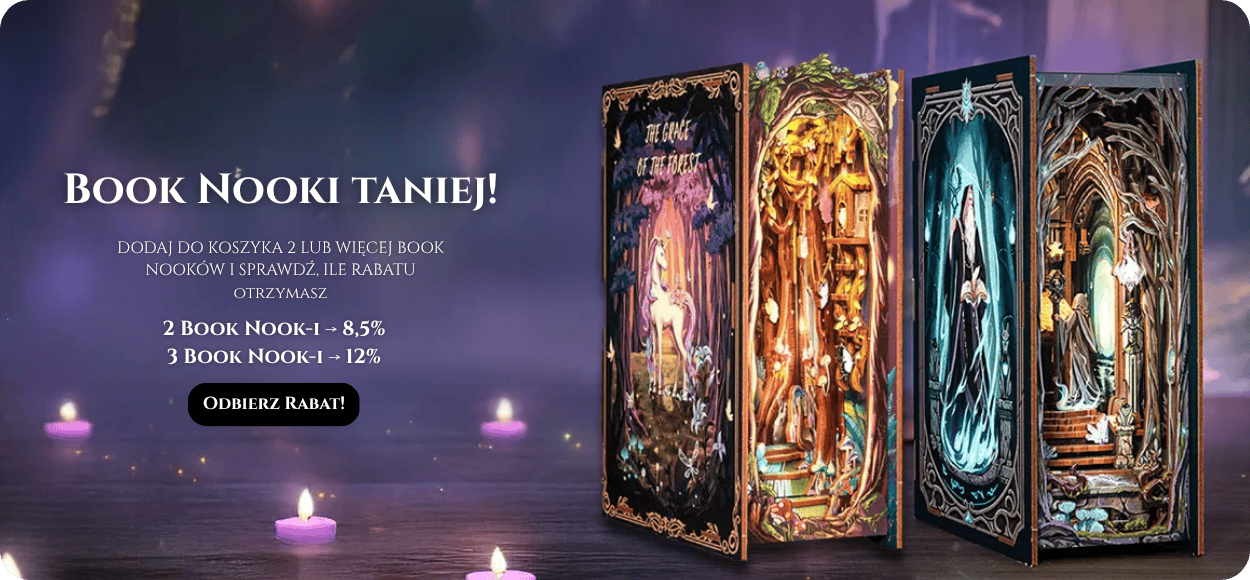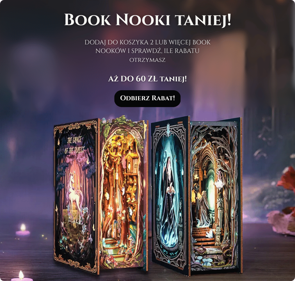 To dzięki Wam nasz „magiczny świat w biblioteczce” urósł jak nigdy. Setki złożonych book nooków / nook booków, tysiące godzin kreatywnej zabawy z mini domkami 3D i puzzle 3D drewnianymi – a do tego Wasze piękne zdjęcia i opinie, które napędzają nas każdego dnia. Dziękujemy za każdy zakup, wiadomość i polecenie znajomym.