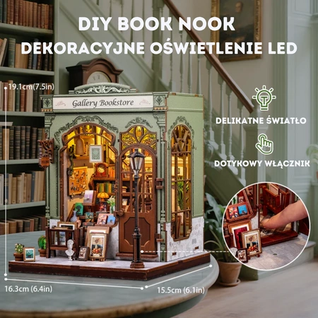 - Miniaturowa księgarnia-galeria DIY z LED, drzwiami - osłoną przeciw kurzową.