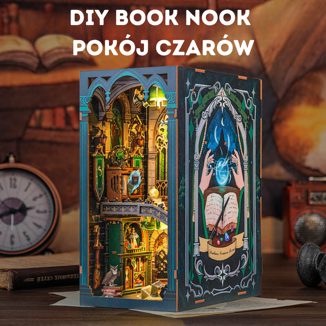 Przenieś się do świata magii i tajemnic z miniaturowym domkiem Book Nook „Pokój Czarów”. Ten dopracowany w detalach zestaw DIY doda Twojej biblioteczce odrobiny czaru i klimatu starej księgi.