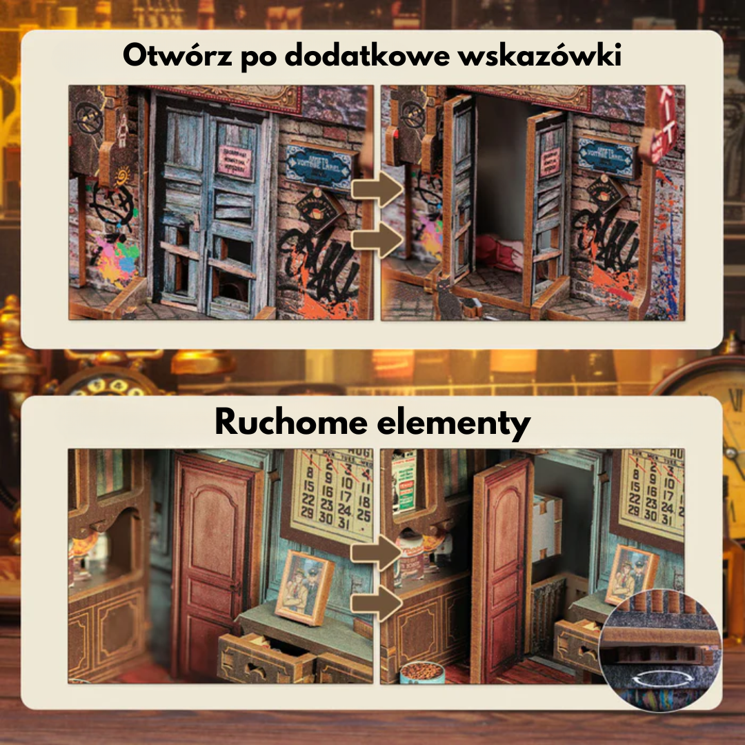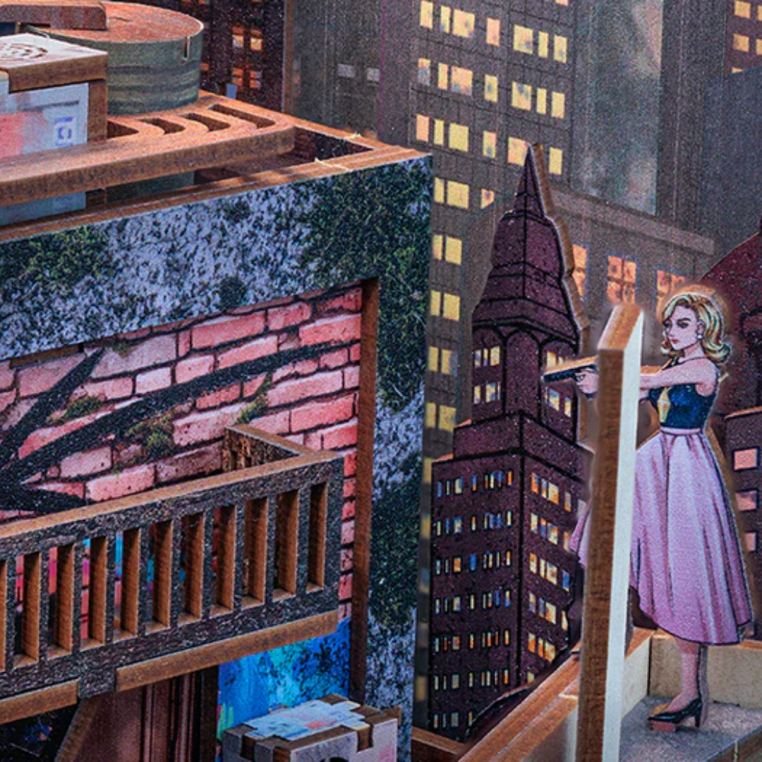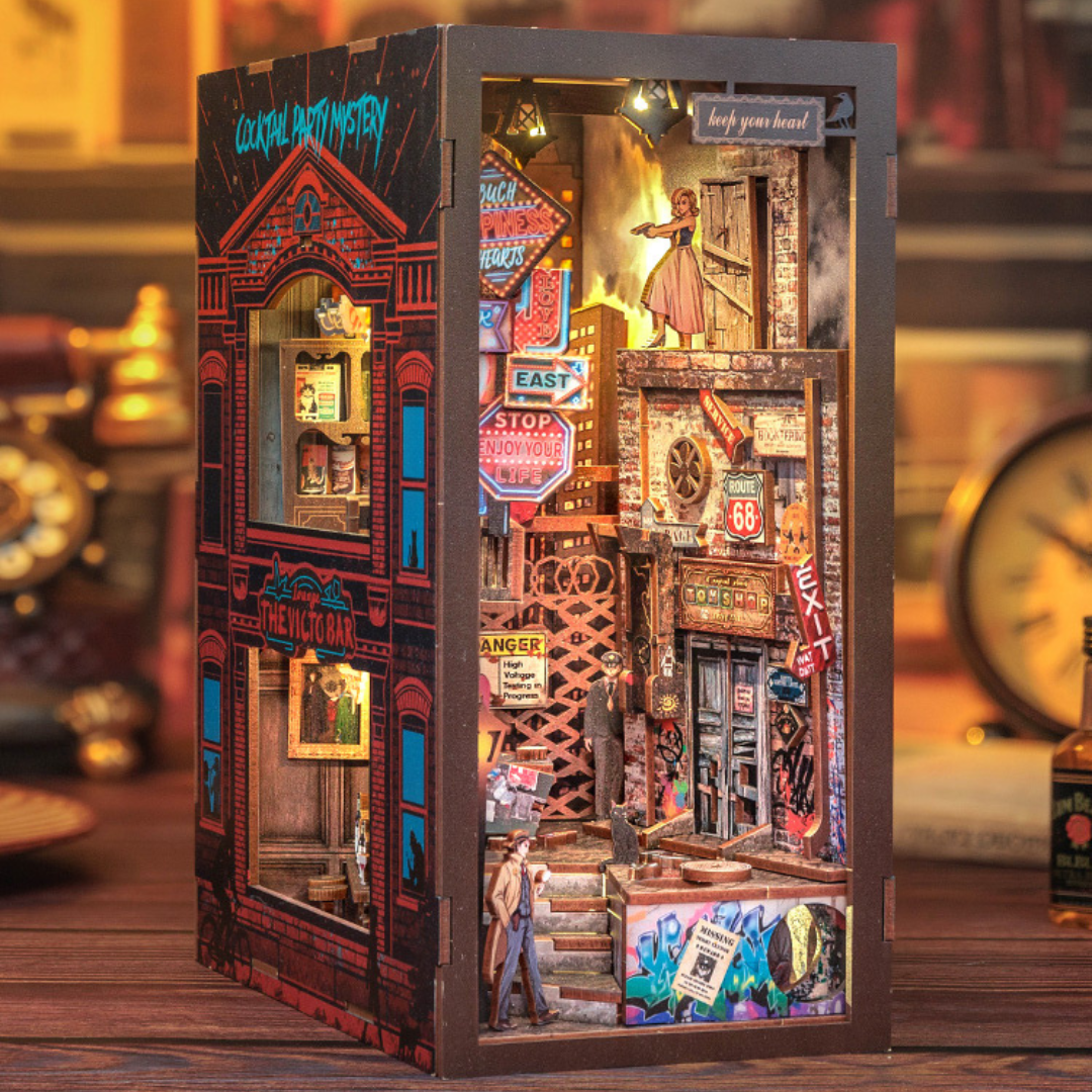 Book Nook "The Long Goodbye" to kolejny domek z serii detektywistycznej. Pierwsza część to Agencja Detektywistyczna Rose. Propozycja idealna dla miłośników kryminałów. Zestaw do samodzielnego złożenia, wyposażony w subtelne oświetlenie LED na baterię. Idealny dla miłośników literatury i wszelkich kreatywnych dusz.