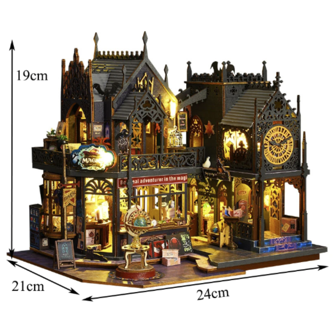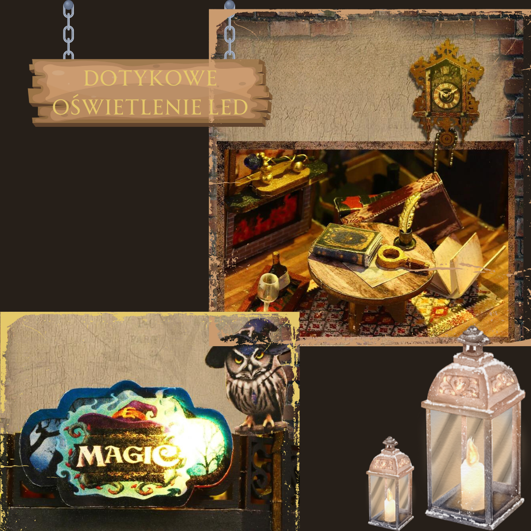 Witaj w magicznym świecie Hola Magic City! Ten uroczy, miniaturowy domek do samodzielnego złożenia przeniesie Cię w świat czarów i przygód. Znajdziesz w nim wiele magicznych artefaktów, ksiąg pełnych zaklęć, mikstur oraz różdżek, aby rozbudzić swoją wyobraźnię. Dodatkowo, wbudowane oświetlenie LED nadaje mu niepowtarzalnego uroku, sprawiając, że każdy wieczór staje się magiczny.