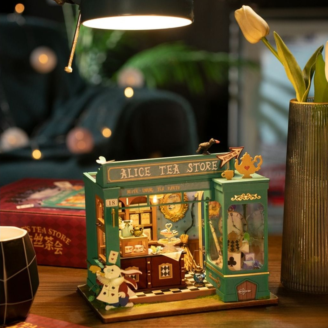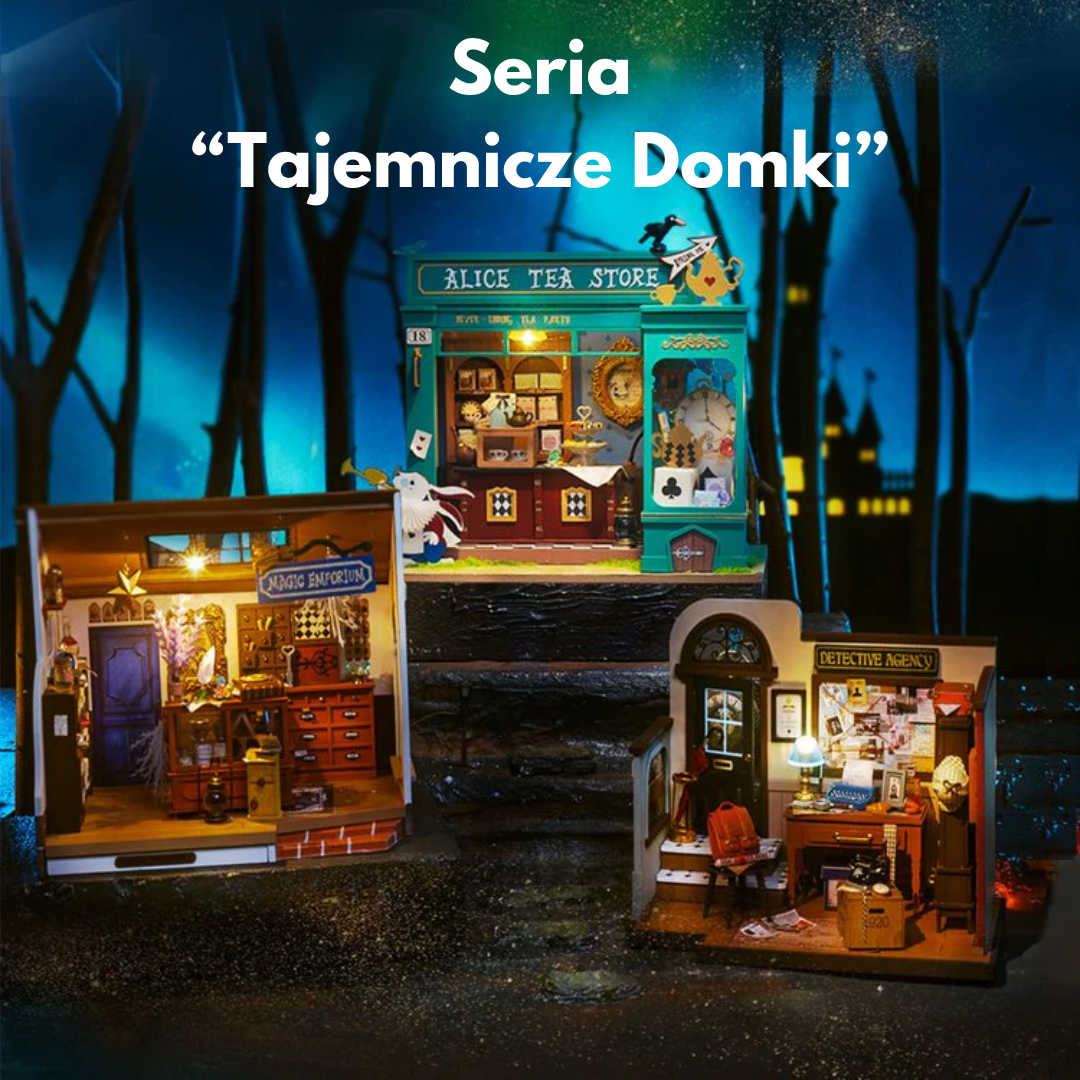 Herbaciarnia Alicji to ręcznie składany miniaturowy domek z serii "Tajemnicze Domki", który łączy w sobie baśniowy klimat, kunszt wykonania i atmosferę pełną detali. Idealny dla fanów literatury, modelarstwa i magicznych wnętrz.