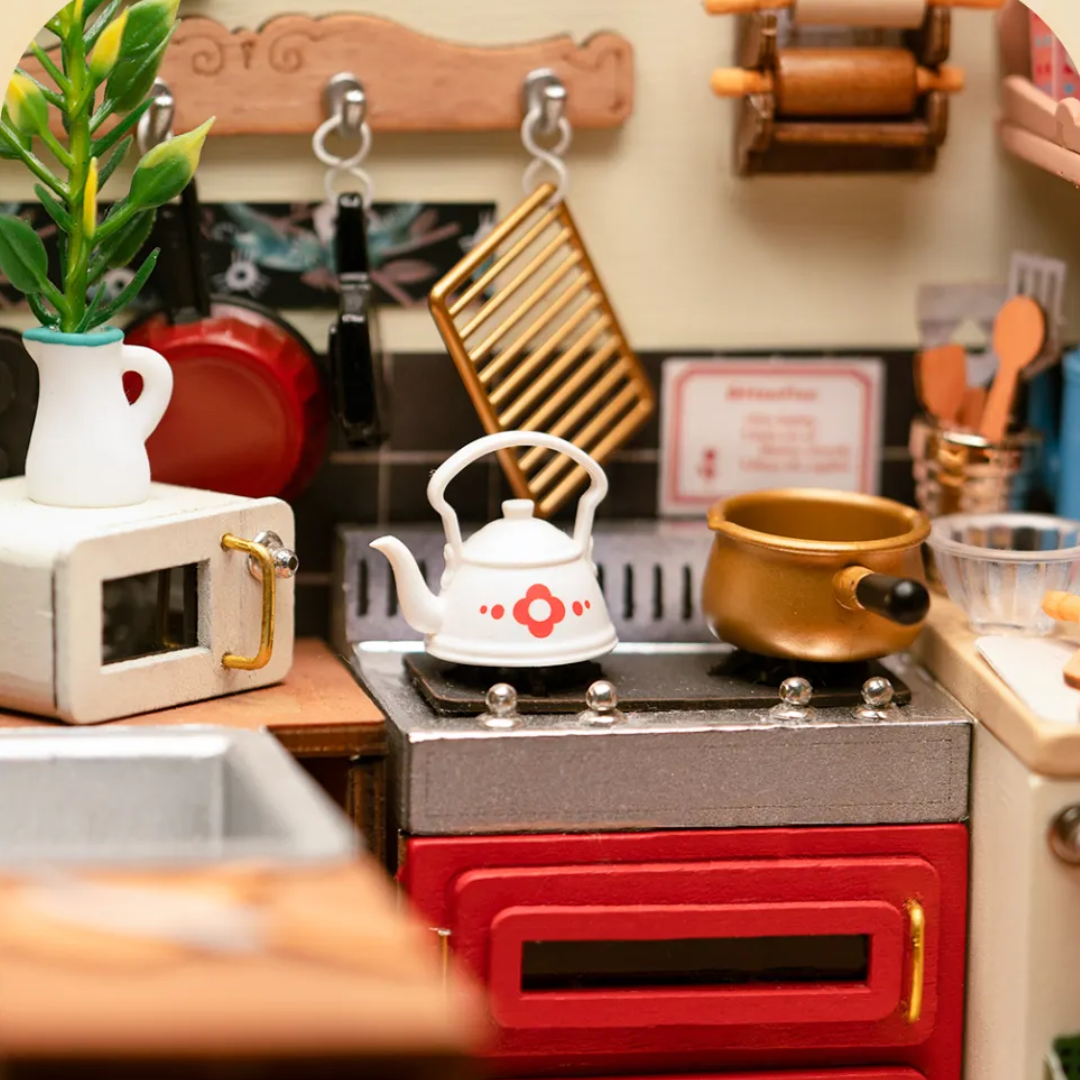 Przytulna kuchnia Rolife to miniaturowy zestaw, który pozwala stworzyć kuchnię pełną ciepła, z klasycznym układem, bogatymi detalami i urokliwym oświetleniem.